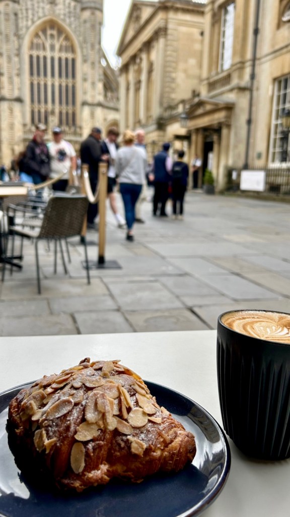 On the day our story begins, I was waiting to tour the Roman Baths in Bath, England. I stopped at a coffee shop in the Bath Abbey churchyard, bought an almond croissant and a latte, and found a table outside. It was the perfect ~food~ photo opportunity, with the abbey as the backdrop. The second after I took the picture, a giant seagull dove at my table, stole the croissant, and splashed coffee everywhere. And thus, the opening line for my newly revived dating app was born. “Hi there, a seagull stole my croissant this morning, how’s your day going?” Unfortunately, for accuracy’s sake, I have since deleted said app and resisted taking any screenshots of the following conversation. One guy, let’s call him, Graham, (get it? The Holiday? You’ll see…) responded, explaining that since he grew up by the sea, he’d learned to keep a hand free for seagull/food protection. And, with that, a July some-kind-of love began.